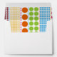 An envelope featuring a pattern of dots in various sizes and bohemian inspired colors on the inside. Look for matching stationery, address labels, and more at Jill's Paperie.