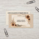This business card for an interior designer features dried autumn flowers and grass holding the corners of a black frame on a parchment-colored card, against a tan background. Could be used for a variety of professions, including florist, vintage clothing stores, country b and b, and more.