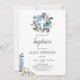 Boho Dusty Blue Beige Flowers Baptism Invitation