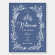Make a stunning first impression for your wedding day with this sophisticated navy blue wildflower wreath wedding welcome foam board, featuring a crisp white hand-drawn botanical wildflower frame, paired with a vintage garden fountain illustration and custom monogram at the top against a rich deep blue backdrop. This lightweight, durable foam board welcome sign is the perfect elegant addition to your wedding entrance, ceremony space, or cocktail hour, and seamlessly coordinates with our full navy blue wildflower wedding stationery suite for a cohesive, timeless aesthetic.