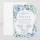 Boho Dusty Blue Floral Gold Geometric Rehearsal Invitation