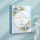 Celebra un momento inolvidable con este álbum de recuerdos personalizado para Quinceañera / 15 años, diseñado en un delicado estilo boho o bohemio. La combinación de tonos azul polvo, azul pastel y azul claro, junto con flores suaves, eucalipto y follaje verde, crea una estética elegante y moderna, realzada con detalles en dorado que aportan un toque de lujo y distinción.