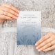 This is a modern bohemian wedding invitation with a dusty blue gradient and pressed botanical elements. An original design created with your special day in mind. Easy to customize the text to create something really unique.
