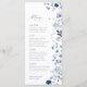 Boho Dusty Blue Navy Whimsical Wildflower Elegant Simple Wedding Menu Template.