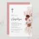 Yes, you can print on the back of your invitation for free! Most designs already have a corresponding design on the back that can be personalized using the Design Tool and going to Layers. This is a great way to communicate more information or further personalize your Boho Dusty Rose Floral Baptism Invitation. The option is really up to you.