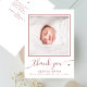 This minimalist new baby shower thank you and birth announcement card features a chic ´´thank you´´ header in whimsical calligraphy, your baby´s photo, and details in elegant typography, all in boho earthy terracotta color on a crisp white background. There is also a cute little heart too. The reverse of the card features your custom message. To customize this design and create your own thank you card, click on the ´´Personalize´´ button and change the photo and text to your own.
