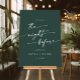 This boho emerald green welcome to the night before sign is perfect for a minimalist wedding. The dark and moody hunter forest green modern bohemian design features simple rustic calligraphy with a unique yet classic style.