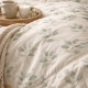 Soft boho botanical duvet cover featuring a calming eucalyptus pattern in sage green and neutral tones.