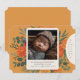 Precious fall birth announcements! Terracotta, teal and golden yellow floral accents give these a boho elegance. Find matching items in my shop. Use the personalization feature to edit the details.