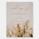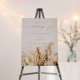 A romantic, modern photo realistic fall wedding welcome sign featuring a neutral dried floral bouquet in wheat, ocher and rust tones.