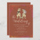 Boho fall Terracotta burnt orange Rust and beige Cream Dinosaur Wedding Invitation Fun Modern T-Rex Bride and Groom Design