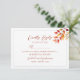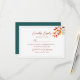 Elegant and seasonal, this teal and orange fall wedding RSVP card features watercolor autumn foliage and a simple, classic layout for collecting guest responses. With space for meal preferences and a return by date, it's perfect for coordinating with your autumn-themed wedding suite. Fully customizable to match your event details and personal style.