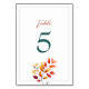 Guide your guests with this minimalist yet eye-catching boho fall wedding table number card. Featuring a clean white background, autumn watercolor foliage, and elegant calligraphy, it blends rustic charm with modern style. Fully customizable to suit your reception décor or seating plan.