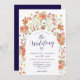 Boho Fall Wildflower Navy Blue and White Wedding Invitation