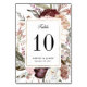 Boho Fantasy Watercolor Floral Wedding Table Number
