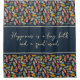 What makes it extra special? A dark blue bar in the center with elegant cream-colored text that reads: "Happiness is a long bath and a quiet mind."