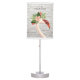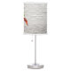 A lamp featuring an illustration of a flamingo wearing a flower crown over a white brick background design. Personalize the name.