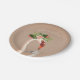 Baby shower paper plates featuring an illustration of a flamingo mama with flower crown and baby chick. Background is brown cardstock inspired. Personalize the name.