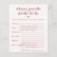 Boho Floral Advice for the Bride Shower Game Card