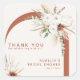 Bohemian Floral Arch, thank you favor sticker. Boho style watercolor flowers, pampas grass and delicate green foliage frame with beige and terracotta orange arch shapes.