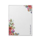 White notepad with beautiful bouquets of bohemian flowers in two of the corners. Add your name in modern navy blue letters.