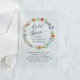 Boho-inspired frosted acrylic bridal shower invitation featuring a watercolor wreath composed of floral wildflowers, "Bridal Shower" in a chic swash script and the bride's name and shower details in elegant serif typography.