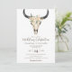 Boho Floral Cow Skull Brown and White Wedding Invitation