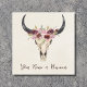 Boho Floral Cow Skull on Natural Cream Square Business Card