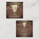 Boho Floral Cow Skull and String Lights on Barnwood Background Square Business Card -