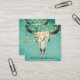 Boho Floral Cow Skull, String Lights on Turquoise Square Business Card