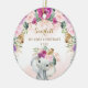 Adorable jungle-themed ornament featuring a sweet baby elephant and elegant watercolor tropical greenery and flowers in blush and violet. Matching items available in our store!