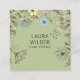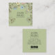 A pastel boho style green event planner business card with pink, blue and green delicate florals. The back of the card is a soft green that matches the green colors on the front of the card. A soft subtle background with vibrant colorful contrasting florals, in a unique square format card.
