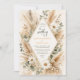 Boho floral frame wedding invitation featuring a soft diamond layout with pampas grass and daisy accents. The earthy palette of beige, cream, and muted greens creates a warm and elegant atmosphere. Perfect for rustic, autumn, or bohemian wedding themes. The centered frame offers clean space for personalized text, making it ideal for invitations, RSVP cards, and full stationery suites. A refined choice for couples who love natural textures and modern romantic design.