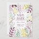 Boho Floral Garden Summer Fall Elegant Save the Date featuring a wide array of summer florals in colors that are on trend for 2020. those include cassis and mellow yellow.