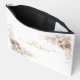 Boho, floral, gift Name accessory and makeup bag showcases a sleek beige-gold script font with elegant swashes on a clean white background. It's the perfect gift for your loved one, designed to hold makeup and small essentials.