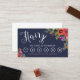 Navy blue loyalty punch card for a hair stylist in a boho floral design with roses, pansies, and daisies. For a discount on the sixth visit, with a blush pink heart as a marker.
