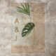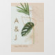 This elegant monogram boho decal is the perfect personal touch to your wedding ceremony. Decorate your wedding floor with a ficus leaf next to the newlyweds' initials and with their wedding date at the bottom. Shown with brown monogram and light pink background. Colors and fonts can be changed to match your style when you click Personalize this Template and then scroll to the bottom and click on Edit Using Design Tool.