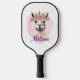 A pretty personalized pickleball paddle with a cute floral llama on a soft pink background. This unique design features an adorable white llama with a crown of wildflowers. The monogram can be personalized.