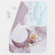 Custom milestone baby blanket featuring bohemian floral moon with baby's name and initials in casual brush script, and numbers with "days, weeks, and months" in classic serif typography. Measures 39" x 29" inches. 100% cozy polyester fleece.