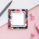 Floral square notepad with colorful flowers in different shades of coral red, orange, and pink against a navy blue background. Add your name in dark blue letters.