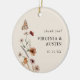 Boho Floral Wedding Ceramic Ornament. This stylish & elegant design features gorgeous hand-painted watercolor wildflowers arranged as a lovely bouquet.