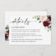 Boho Burgundy and Blush floral Wedding Details Enclosure Card. This Card is characterized by boho burgundy and blush roses and flowers with two modern high-class fonts that shape the trends of the present and future festive events.