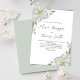 This design features an floral white flower elegant magnolia, a watercolor white flower garden bouquet, a simple typography handwritten script, a stylish trendy calligraphy script, for a soft romantic spring summer, beautiful botanical nature garden wedding, a simplistic sophisticated minimalist, with a modern calligraphy script font text, a white cream green wedding invitations