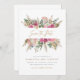 This save the date card features beautiful bohemian elements including roses, flowers, pampas grass, eucalyptus leaves and neutral color branches – perfect for a boho or rustic wedding!