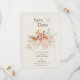 Enchanting Boho Floral Design: Featuring vibrant floral arrangements and earthy tones, this save the date card embodies the whimsical spirit of boho chic combined with rustic western aesthetics, ensuring it stands out in any mailbox.