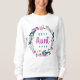 Custom printed sweatshirt personalized with your text or photos. This pretty feminine design is personalized with "Best Aunt Ever" quote or add your own text in a pretty boho watercolor floral wreath in shades of purple, blue and green. Use the design tools to add photos, change the shirt style and color, and choose any fonts you like to create a unique one of a kind gift for your favorite auntie.