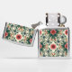 An elegant boho pattern with ornate flowers and curved leaves in shades of green and pink. The detailed design gives the design a natural and playful look, perfect for textile products, wallpaper or decorations with a touch of vintage romance.