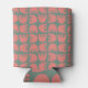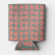 This can cooler has a boho design of coral flowers repeating across the design on a field of green.