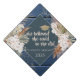 Boho Flowers Navy Blue Wood Graduation Cap