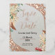 This boho & foil wedding Save the Date makes a real statement as your loved one's first introduction to your wedding.
